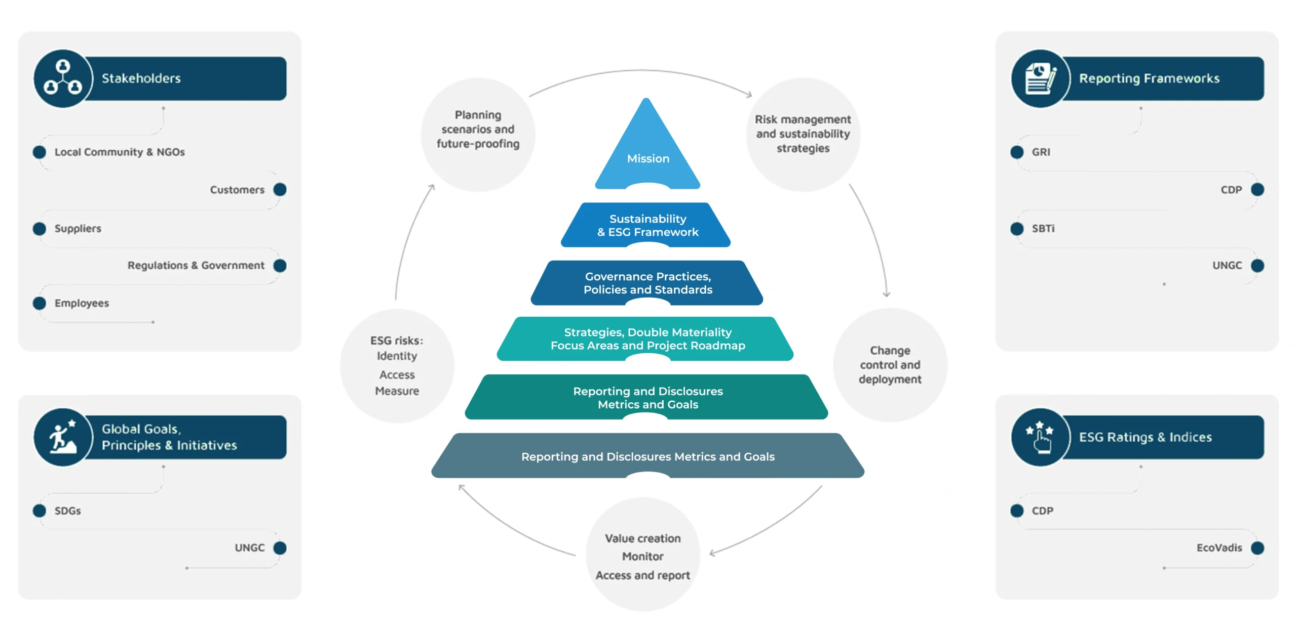 Using TCFD and risk-based management, we identify ESG risks/opportunities, track progress, disclose transparently, and drive continuous improvement for long-term value.
